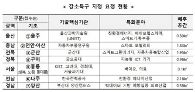 ![]() 韩国科学技术信息通信部日前宣布,第二届“强小特区”专家委员会正式成立。该委员会将负责明年上半年有关地区提交的建设“强小特区”的申请审核。 为推动地区创新,科技信息通信部于2017年12月启动了“强小特区”建设项目,旨在依托地方研究所和大学等核心研究机构,打造新型研发特区。 此前,虽建设了光州、大邱等五个研发特区,但产学研互动合作不够密切且效率低下这一问题依旧存在,新启动的“强小特区”将建设规模控制在 20km2范围内,重点加强产学研之间的合作,推动大学研究所等公共部门的研究成果转移转化,打造地区创新高地。 现有特区与强小特区的比较 区分 现有特区 强小特区 指定条件 基于数量 (3所大学、3家政府资助研究机构,40家研究所等) 基于质量 (技术核心机构及 地区科技能力) 培育主体 中央政府 地方政府(广域及基础) 合作 产学研创新主体间的 联系和合作不足 以技术核心机构和地方政府为中心,强化与地区创新主体的合作伙伴关系 空间规定 没有限制 腹地空间上限为2km2 (总体面积不超过为20km2) 今年8月,已指定京畿道安山、庆南金海/晋州/昌源、庆北浦项以及忠北清州等6个地区为首批“强小特区”。 据悉,蔚山市(蔚州君)、忠清南道(天安市和雅山市)、全罗北道(群山市)、庆尚北道(龟尾市),首尔市(洪陵)、全罗南道(罗州市)和庆尚南道(养山市)等七个市、道提交了2020年上半年“强小特区”申请。 第二届委员会将对各地区是否符合申请资格、成果转移转化能力和模式、发展方向、特色领域是否突出及空间利用是否合理等进行严格审核。 第二届强小特区申报现状 区分(受理顺序) 技术核心机构 特色优势领域 腹地空间 广域 基础 蔚山 蔚州君 蔚山科学技术院(UNIST) 环保能源、生物健康、智能机械和零部件 0.80km2 忠清南道 天安和雅山市 汽车零部件研究院 智慧出行 1.83km2 全罗北道 群山市 群山大学 智能清洁能源、汽车用融合产业 1.95km2 庆尚北道 龟尾市 金乌工业大学 智能型ICT仪器 0.96km2 首尔 洪陵(城北、芦原、东大门) KIST,高丽大学、庆熙大学、首尔科技大学 生物和医疗 0.1km2 全罗南道 罗州市 韩国电力公社 环保能源产业 2.18km2 庆尚南道 养山市 釜山大学梁山分校 基于大数据的预防实证医疗产业 0.58km2 芦 信息来源: https://news.naver.com/main/read.nhn?mode=LS2D&mid=shm&sid1=105&sid2=228&oid=001&aid=0011206236 发布机构: 韩国网络媒体 发布时间:2019.11.12 信息来源 : https://news.naver.com/main/read.nhn?mode=LS2D&mid=shm&sid1=105&sid2=228&oid=001&aid=0011206236 |