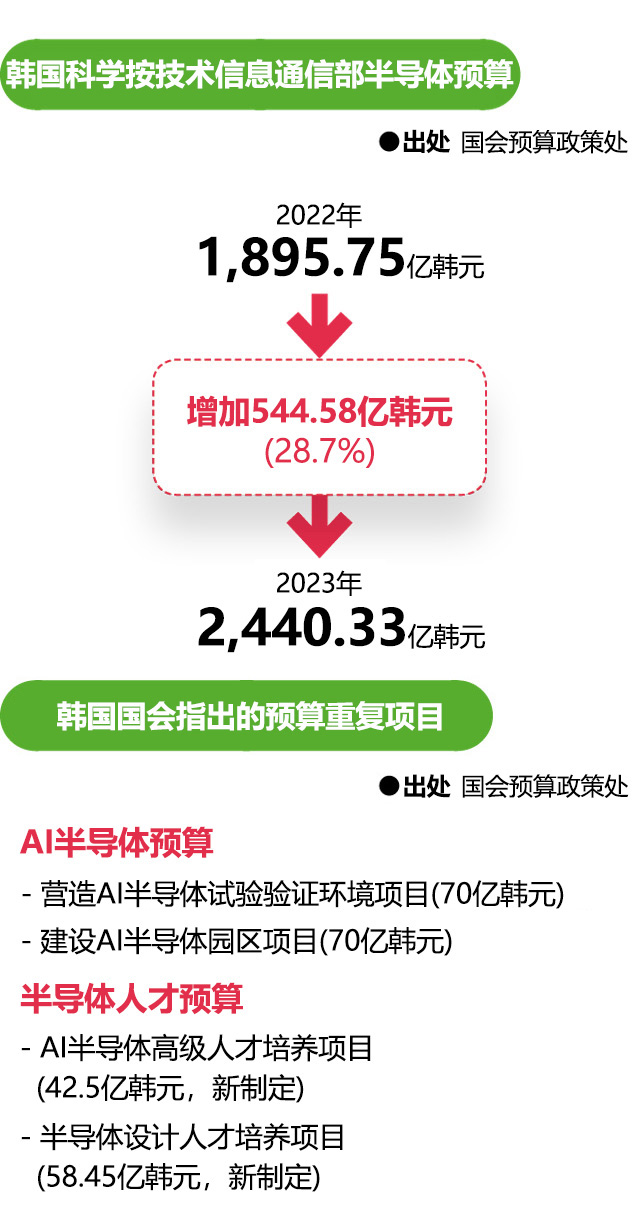 11月6日,韩国国会预算政策处通过《2023年预算案分析报告》指出,韩国科学技术信息通信部(下称韩国科技部)的半导体投入预算有可能在多个地方存在重复情况。