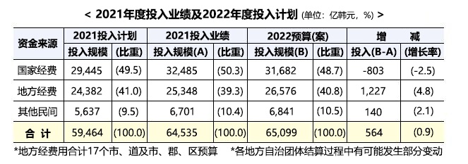 今年地方科学技术振兴将投入国家经费3.1万亿韩元(约合166亿元人民币)、地方经费2.6万亿韩元(约合139亿元人民币)、其他民间6.8千亿韩元(约合36亿元人民币)等。整体资助金额比去年的投入业绩(6.4万亿韩元)增加了0.9%。