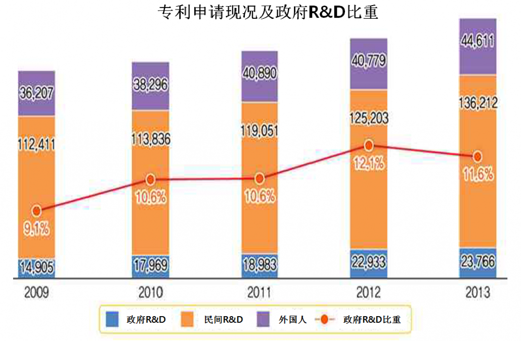 ![]() 2015年2月韩国专利厅联合知识财产战略院发布“2013年政府研发(R&D)专利成果管理与利用实态调查分析结果” 。 2013年通过政府R&D创造的国内专利申请量为23,766项,过去5年(2009-2013)年均增加约12.4%。所有专利申请之中,政府 R&D的比重由2009年的9.1%增加到2013年的11.6%。 大学、公共研究机构的技术转移合同最近5年也呈迅速上涨趋势。2013年大学的专利转移率为4.1%,公共机构专利转移率则为8.5%。 此外公共机构每项专利的转移费也较大学高出770万韩元(约合4.4万人民币)左右。 <表1> 专利申请现况及政府R&D比重 <表2> 各年专利转移情况(2009-2013) <表3> 2013年专利转移率及每项技术费 详见附件。 资料来源:《2013年政府研发(R&D)专利成果管理与利用实态调查分析结果》,韩国专利厅、知识财产战略院, 2015.02 |