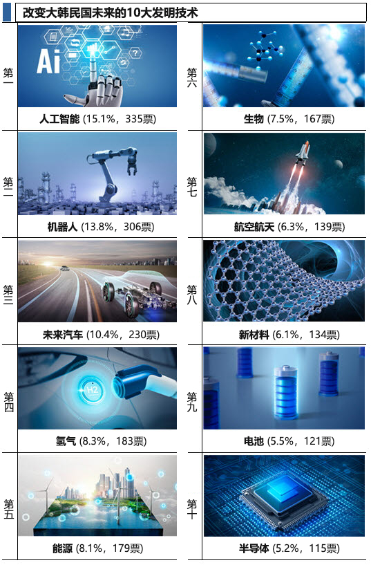 | 人工智能(AI)被选为改变大韩民国未来发明技术的第一名 | ||