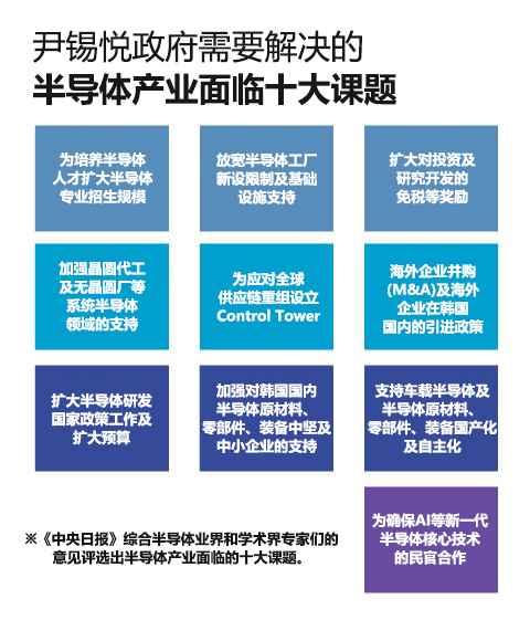 特别紧迫的课题是,预计今后10年内将缺少3万多名半导体人才。韩国半导体显示器技术学会会长指出:“韩国国内企业每年招聘的1万名半导体人才中,只有1400名左右是半导体专业人才”,“相反,中国台湾已经连续10年每年培养1万名专业人才,中国大陆每年培养20万名”。他强调:“通过放宽首都圈限制等,增加大学半导体专业招生名额,为了培养硕士、博士,应该增设半导体研究生院。”