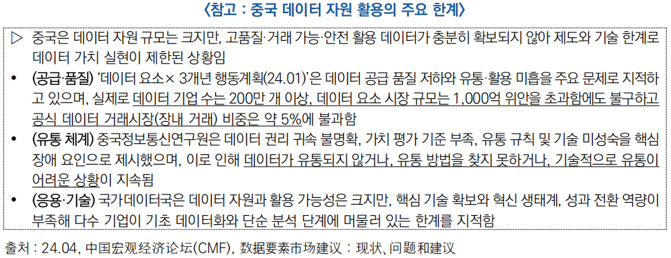 ○ (배경) 중국은 데이터 자원 규모는 크지만, 활용 수준이 낮다는 문제가 지속적으로 제기됨