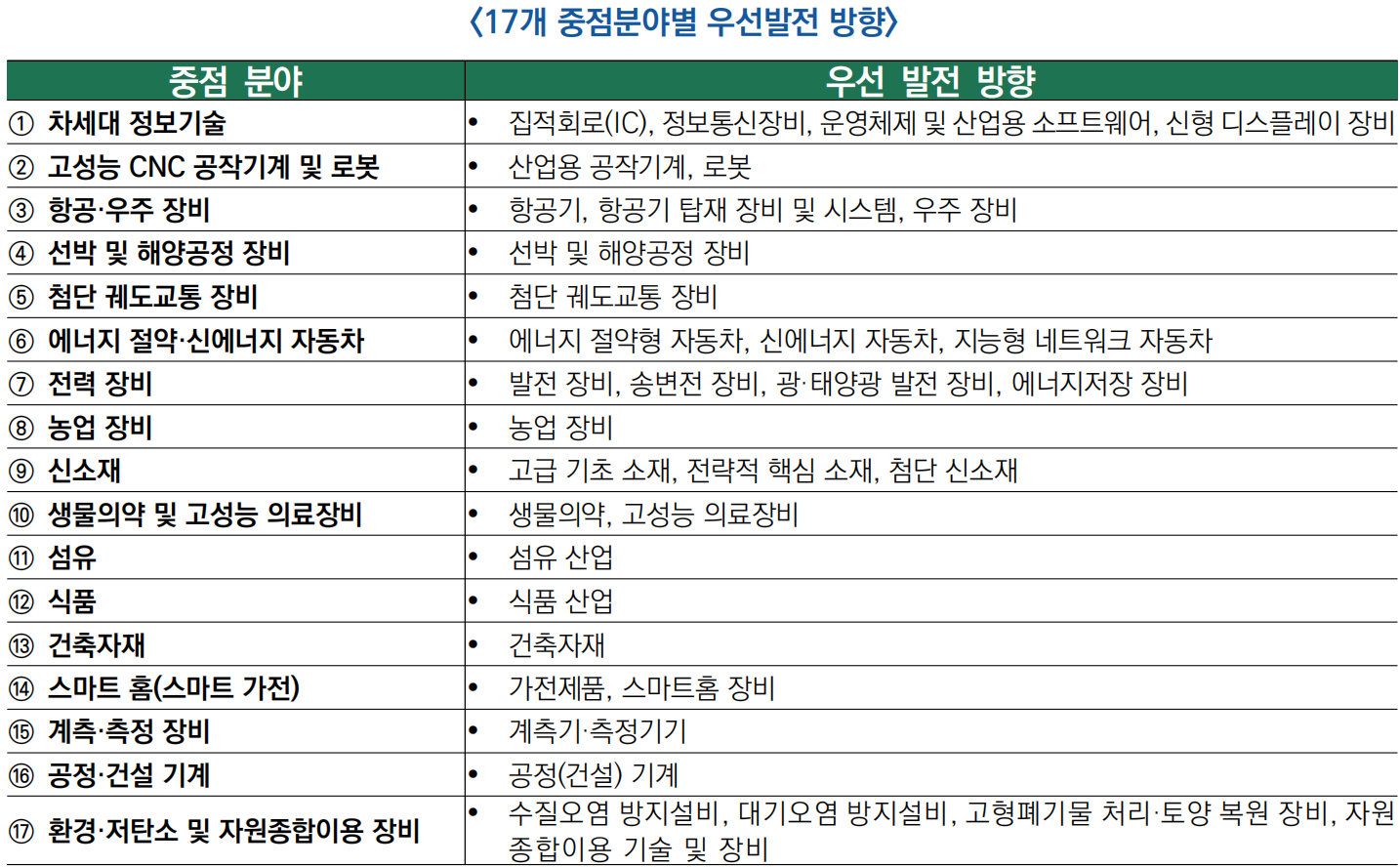 ○ 기타 항공우주, 집적회로(반도체), 신소재, 생의학 등은 세계적 수준으로 육성하되, 소프트웨어와 정밀 계측기 분야의 격차 해소에 집중