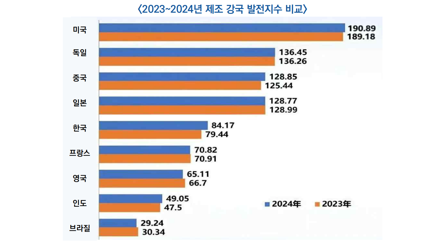 □ 중국공정원과 중국기계과학기술연구원 등이 공동 발표한 '2025 중국 제조 강국 발전지수 보고서'에 따르면, 중국은 이미 세계 4위권의 선진 제조국 반열에 올랐음