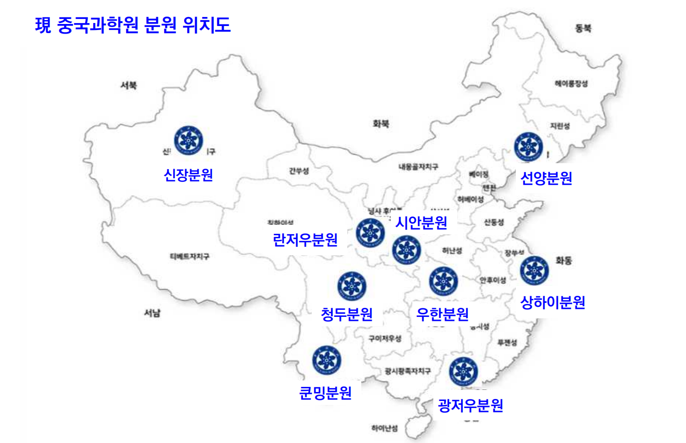 ○ (2개 분원 취소) 중국과학원은 이번 조직 개편을 통해 창춘(长春)분원·난징(南京)분원을 폐지했으며, 이에 따라 분원 수는 기존 11개에서 9개로 축소됨