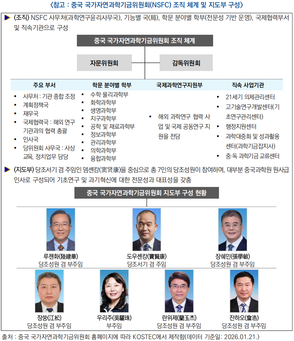 * NSFC는 1986년 설립된 과학기술부(MOST) 산하 기관으로, 기초연구 활성화와 인재 양성을 목표로 연구비 지원 추진