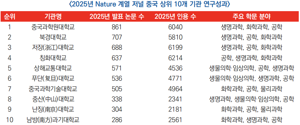 | Nature 계열 논문으로 본 중국 과학 역량 구조 | ||