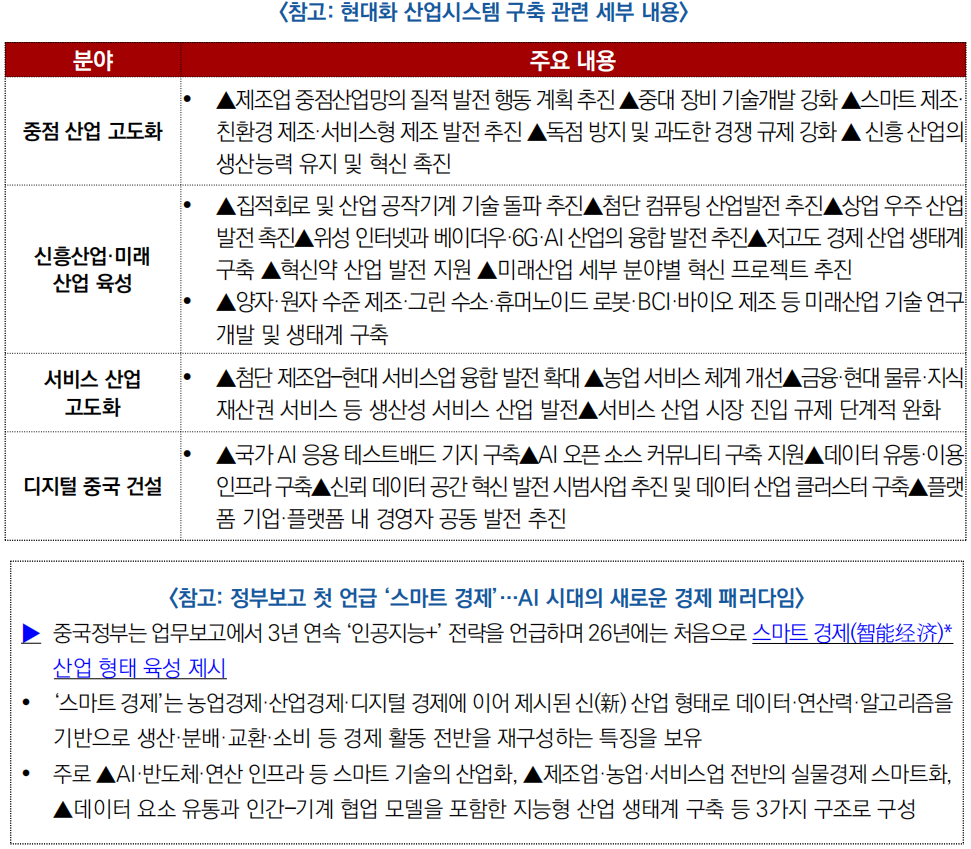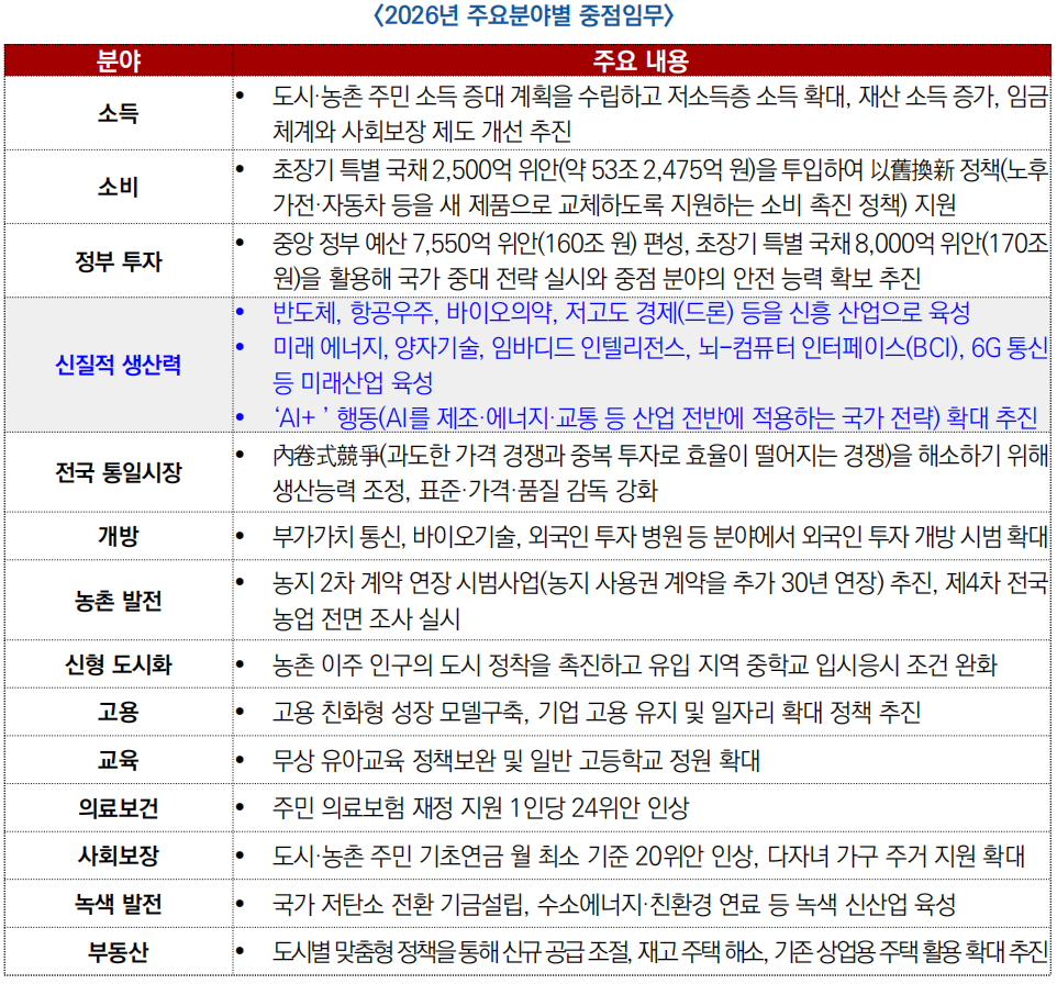 (신흥 산업) 2026년 보고는 ▲반도체, ▲항공우주, ▲바이오의약, ▲저고도 경제 등 4대 주요분야를 국가 핵심 신흥 주력산업(新兴支柱产业)으로 명확히 제시