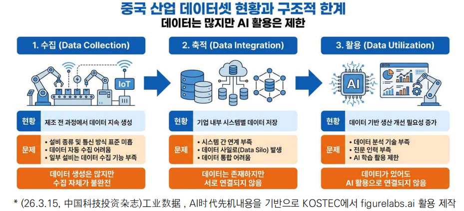 ○ (발전 현황) 중국 제조업 현장에서는 연구개발, 생산공정, 설비운영, 유지보수 등 전 과정에서 많은 데이터가 생성되고 있으나 AI 활용할 수 있는 고품질 산업 데이터셋은 부족한 상황임