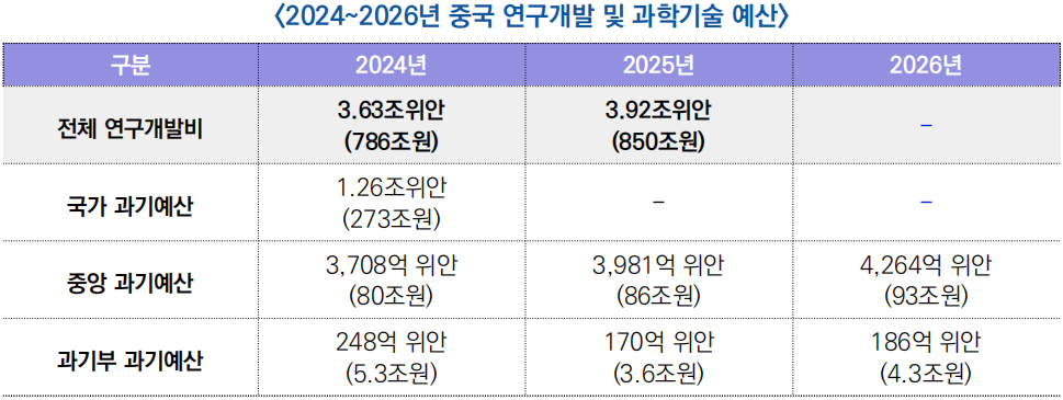 2026년 중국 연구개발 및 과학기술 예산