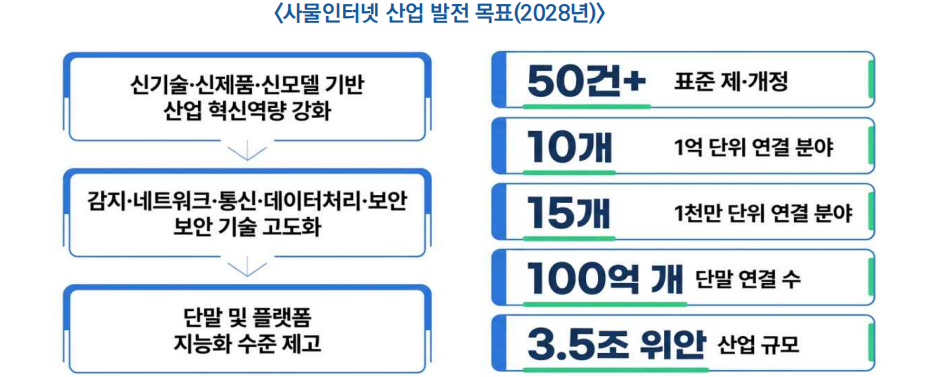- 단말 연결 수 100억 개 수준 달성, 핵심 산업 규모 3.5조 위안(약 760조 원) 이상 확대