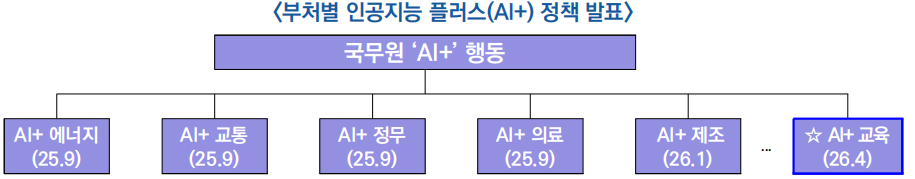 - 이번 계획은 에너지·교통·정무·의료·제조에 이어 교육 분야까지 확장된 AI 활용 지침으로, 교육 영역도 국가 AI 전략의 핵심축으로 편입된 상황
