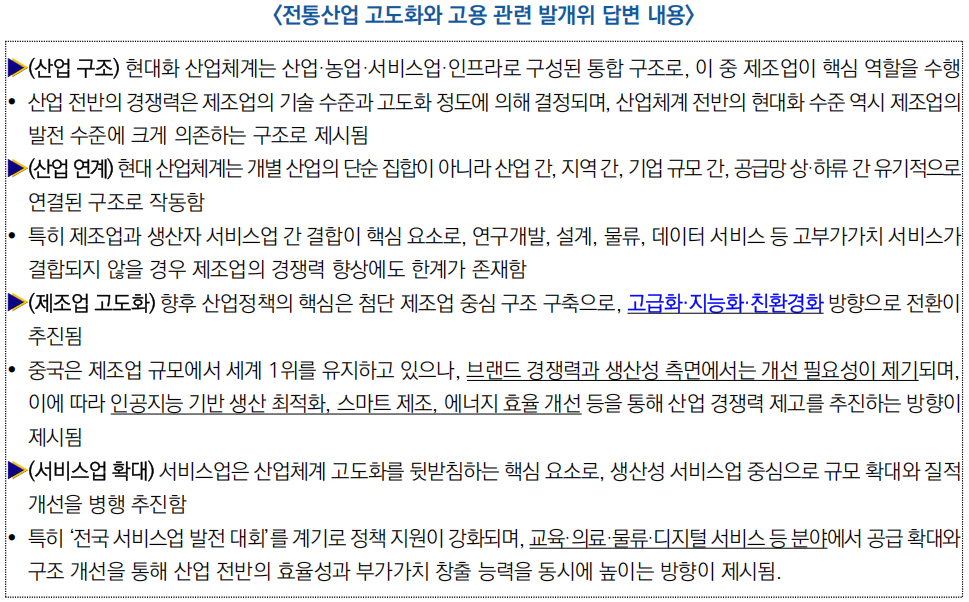 ○ 전통산업은 신산업의 기반으로서 지속적으로 고도화되는 핵심 축이며, 기술혁신에 따른 고용 변화에 대응하면서 ‘산업 고도화+고품질 고용’을 동시에 추진하는 방향으로 정책이 설계됨