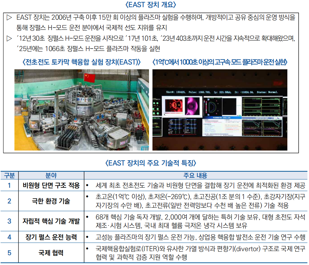 ○ EAST는 국제 과학계에 개방된 실험 플랫폼으로, 다양한 연구기관이 핵융합 관련 실험을 수행할 수 있는 환경을 제공함