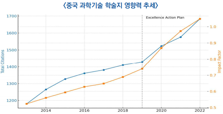 - 특히 ′19년 시작된 ‘중국 과학기술 학술지 우수화 행동계획’은 학술지의 종합 역량과 국제 경쟁력을 크게 강화하는 데 기여