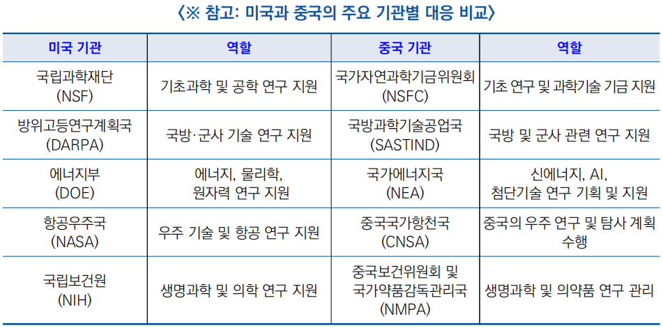 | 미·중 과학기술 관리체제 비교 : 중앙집중형(中) vs. 분산협업(美) | ||