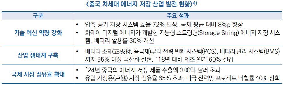 ![]() □ (성과) 지난 10년간 지속적인 기술 혁신과 산업 생태계 구축, 국제 경쟁력 강화를 통해 중국은 차세대 에너지 저장 산업에서 글로벌 선도 위치를 확보