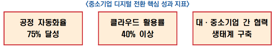![]() ○ 주요 과제로 디지털 전환 시범 사업, 단계별 디지털 전환 지원, 공급망 및 클러스터 디지털화 등 7대 방향을 제시
