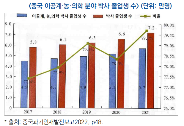 - 이 중 박사 졸업생은 5.7만 명으로 연평균 6.3%의 높은 성장세를 보임