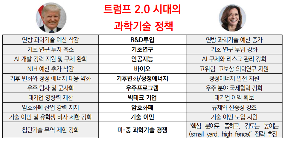 ○ (상하이과학학연구소) 트럼프가 연방 과기 예산 삭감 및 군사 기술 강화, 인공지능(AI) 개발 및 규제 완화, 기후변화와 청정에너지 대응 약화 등의 과기 정책을 취할 가능성이 높을 것으로 전망