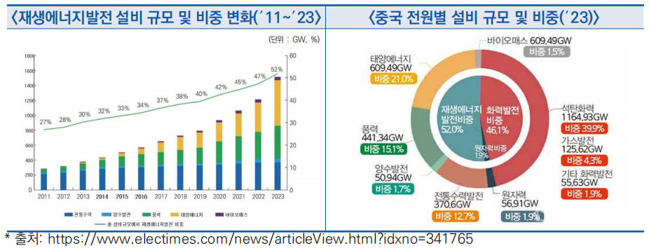 - 특히 태양광 발전은 중국의 제2 전력원으로, 풍력발전은 제3 전력원으로 부상