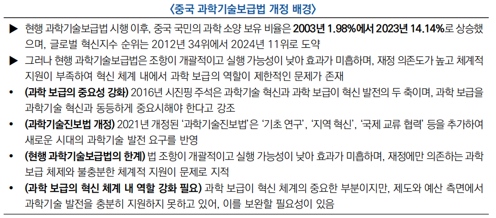 | 중국 ‘과학기술보급법’ 개정 | ||