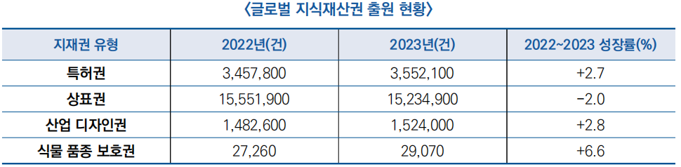 1) 특허권(2.7% 증가해 355만 건으로 역대 최고치 기록)