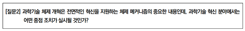 ▷ 셋째, 생태계 차원에서 과학기술 혁신에 부합하는 과학기술 금융 체계를 구축하고, 과학기술 창업 투자를 중심으로 한 과학기술 금융 서비스 체계를 신속히 형성할 것이며, 투자자본이 핵심 기술의 형성 초기 단계, 또는 소규모이거나, 장기 투자가 요구되는 영역에도 적극 유입되도록 하여 금융 자원을 혁신의 원천으로 견인할 계획임