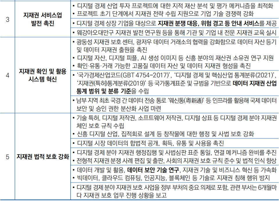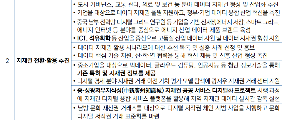 - ′21년 10월, 국무원은 ‘14·5 국가 지재권 보호 및 활용 계획’을 발표하여 데이터 지재권에 대한 보호 규칙을 확립