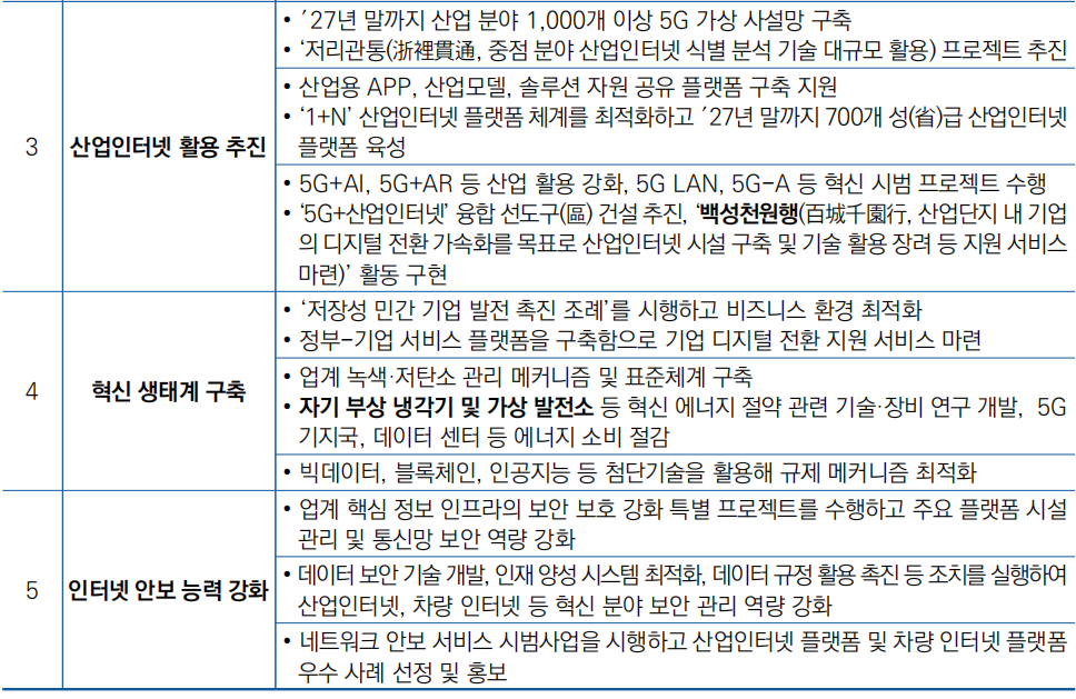 - 5G 기지국 30만 개, 10G-PON(Passive Optimal Network) 포트 150만 개 추가 설치