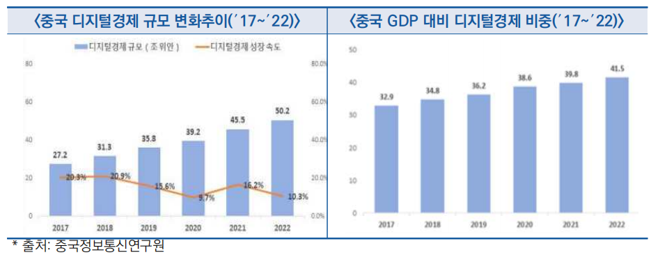 - 디지털 경제가 중국 국내총생산(GDP)에서 차지하는 비중은 41.5%으로 급속하게 성장