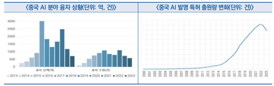 - ′23년, 중국 AI 관련 기업 수는 9,183개로 세계 2위를 차지했으며, 정책 지원, 방대한 시장 수요, 교육과 연구개발에 대한 막대한 투입이 원인