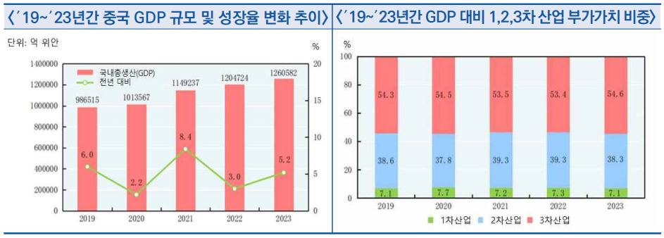 - 이 중 1차 산업의 부가가치는 8조 9,755억 위안으로 전년 대비 4.1% 증가, 2차 산업은 48조 2,589억 위안으로 4.7% 증가, 3차 산업은 68조 8,238억 위안으로 5.8% 증가