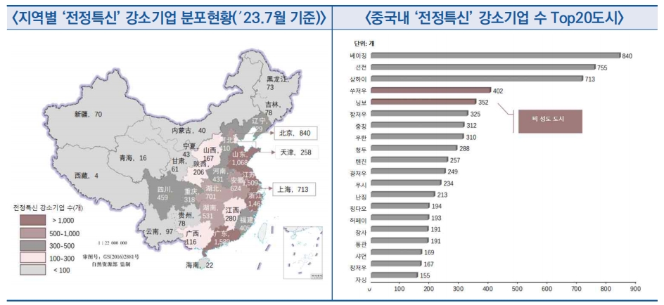 ○ 중국 컨설팅 업체인 Frost&Sullivan(弗若斯特沙利文)와 터우바오연구원(头豹研究院)은 공동으로 ‘2023년 중국 전정특신* 기업 발전 백서’ 발표