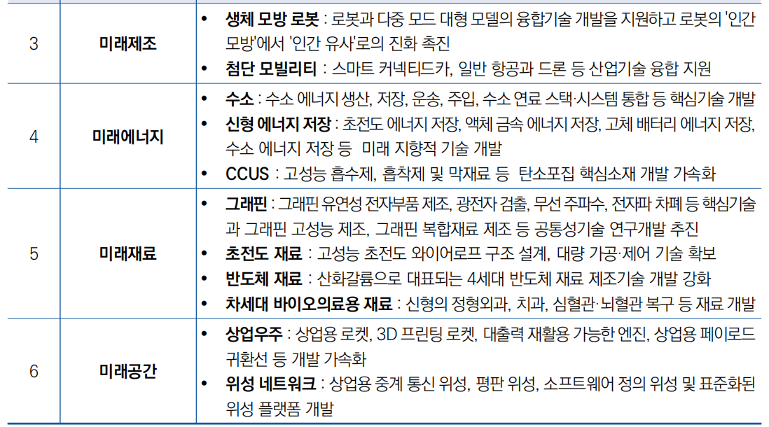 ![]() ○ 주요 내용으로 미래정보, 미래건강, 미래제조 등 6대 미래산업 혁신거점 구축 제시