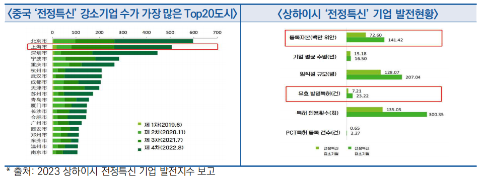 - 상하이시 국가급 ‘전정특신’ 강소기업의 유효 발명 특허는 23.22건으로 시급 ‘전정특신’ 중소기업(7.21건)의 3배를 초과
