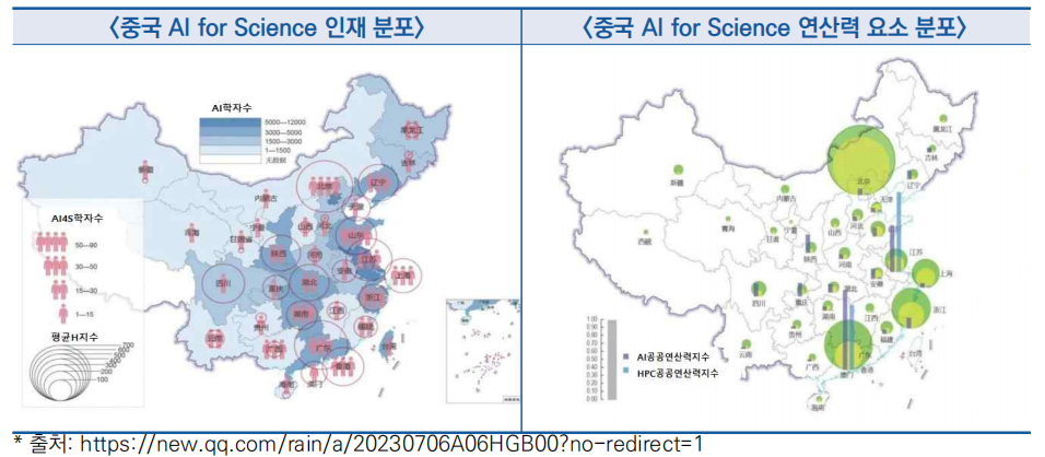 ○ 최근 중국과학기술정보연구소와 과학기술부 차세대 인공지능 발전연구센터가 공동으로 ‘중국 AI for Science 혁신지도 연구보고’ 발표