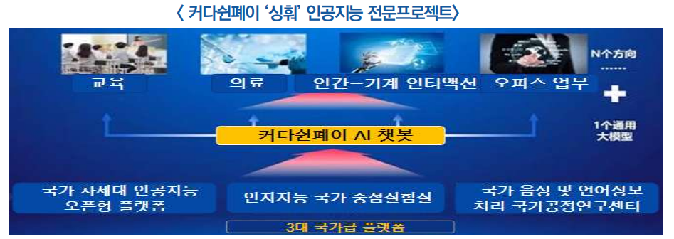 ○ 커다쉰페이사는 ‘1+N’ 인공지능 전문프로젝트의 집중 추진을 통해 최근 텍스트 생성 등 7대 기능을 탑재한 ‘싱훠’ AI 챗봇을 공개함