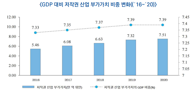 - ′20년에 중국 특허 밀접형 산업 부가가치의 GDP 대비 비중은 11.97%를 기록하고 ′18년부터 부가가치 규모 변화 상승 추세 유지