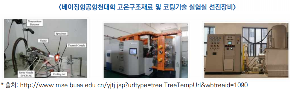 - (성공사례) 베이징항공항천대학의 고온구조재료 및 코팅기술 실험실은 항공 엔진, 대형 항공기 수요를 중심으로 고온구조재료, 고온 보호 코팅, 컴퓨팅 재료 공학, 장비 및 특성화 기술의 R&D 플랫폼으로 높이 평가받고 있음
