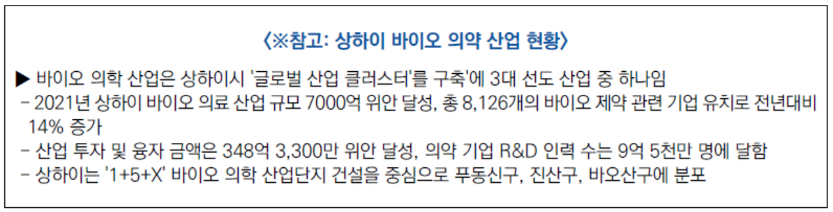 - 상하이기술교류소에 '바이오의학전문판(生物医药专板)' 신설, 바이오 의료 거래 서비스 상품 개발