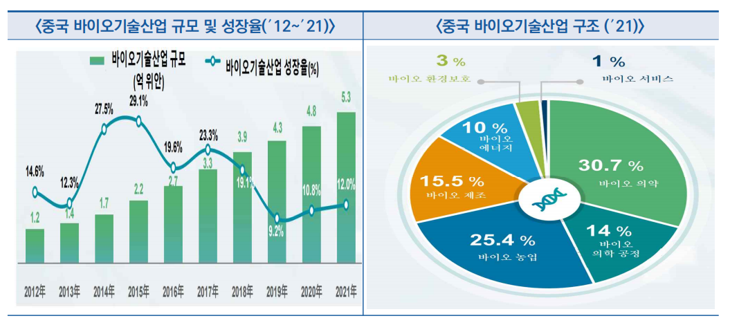 □ ′21년 말 기준 중국의 바이오경제 규모는 18조 4000억 위안(3,436조 5,680억원) 돌파 (12.7)
