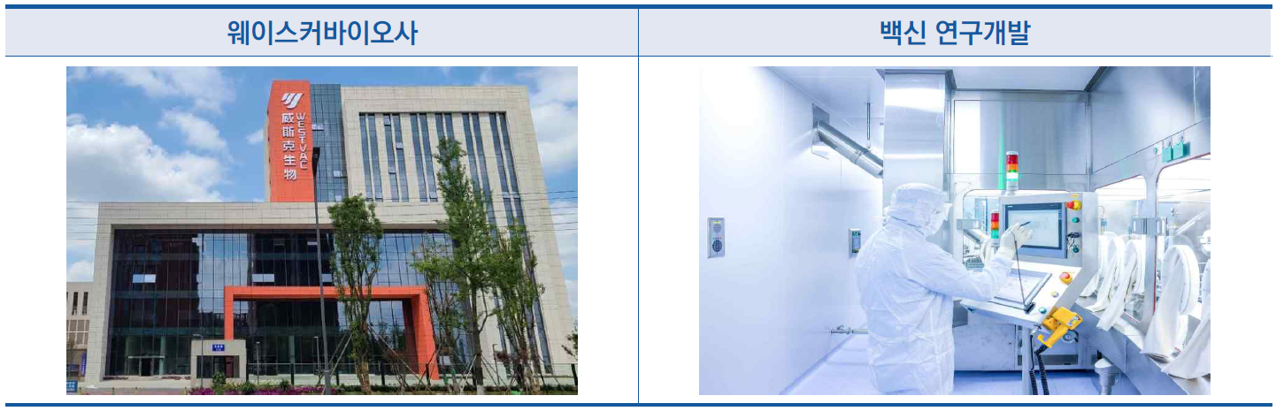 - 쓰촨대학 화시병원과 웨이위취안(魏于全) 원사 연구진이 공동으로 설립한 혁신형 바이오제약 기업으로서 백신의 연구개발과 생산에 주력하고, 300여명의 고용인력 보유