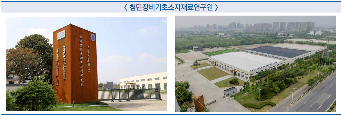 - 상하이대학 첨단장비기초소자재료연구원은 첨단장비의 경량화에 중요한 역할을 하는 19.8급 초고강도의 파스너(fastener)를 세계 최초로 개발하였으며, 50개 이상 과학연구팀, 50명 이상의 석박사를 보유