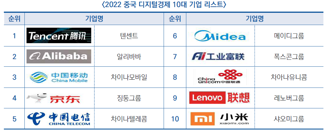 | 포브스 차이나, ′22년 중국 디지털경제 100대 기업 발표 | ||