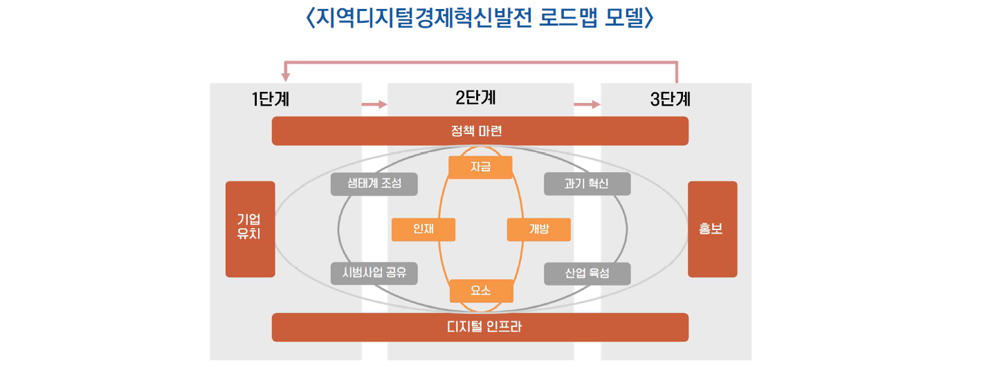 - 이와 관련 지역내 존재하는 디지털 인재 부족, 혁신역량 미흡, 데이터 장벽 존재, 자금 투입 부족, 산업 생태계 미비 등의 문제 해결에 대한 전략 모색