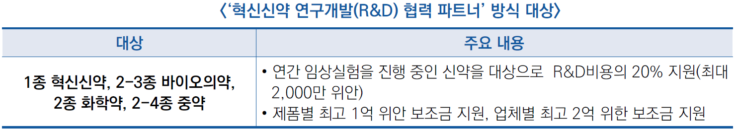 - 특히 국내 최초로 ‘혁신신약 연구개발(R&D) 협력 파트너’ 방식*을 제시