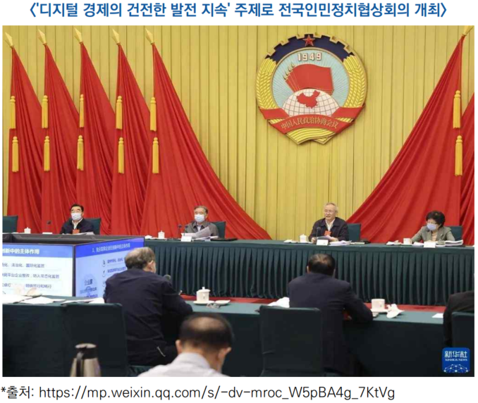 ○ 류허(刘鹤) 부총리는 '디지털 경제의 건전한 발전 지속'을 주제로 개최된 전국인민정치협상회의(정협)*에서 플랫폼 경제발전과 디지털 기업의 국내외 자본시장 상장을 강조