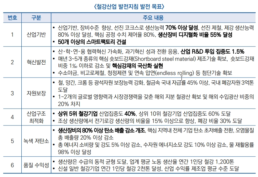 ● 중점과제로 산업혁신능력 강화, 신규 철강사업 확장 금지 및 산업 구도 최적화 등 12가지 제시